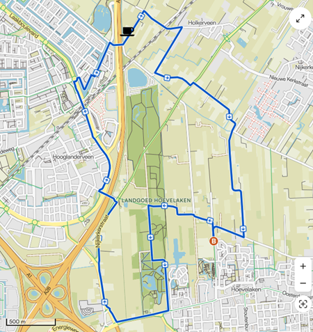 5. Oversteek Amersfoortseweg en links op Hooglandseweg.