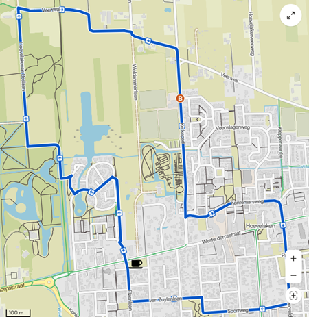 1. Uitgang achter SC Hoevelaken links op Kerkepad
